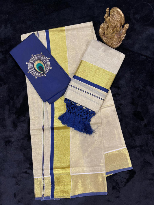 Regular price $60.00 AUDRegular priceUnit price perSale price $60.00 AUDSet Mundu - Gold & Colour Border with Tassels