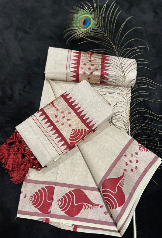 Set Mundu - Orange Theyyam with Gold Kasavu