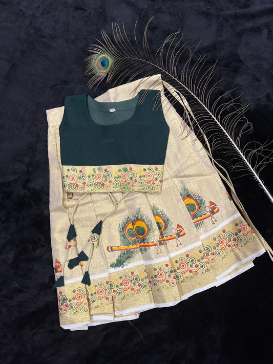 Skirt & Blouse for 3 Year Old - Bottle Green & Gold