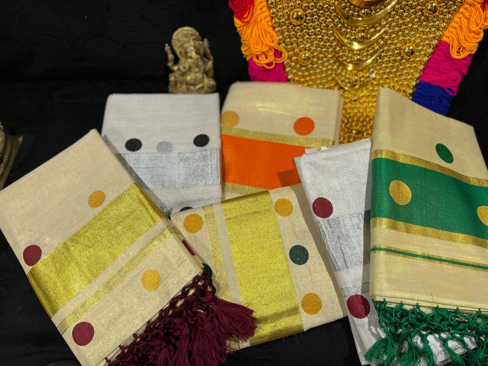 Regular price $60.00 AUDRegular priceUnit price perSale price $60.00 AUDSaree - Silver Kasavu with Polka Dots