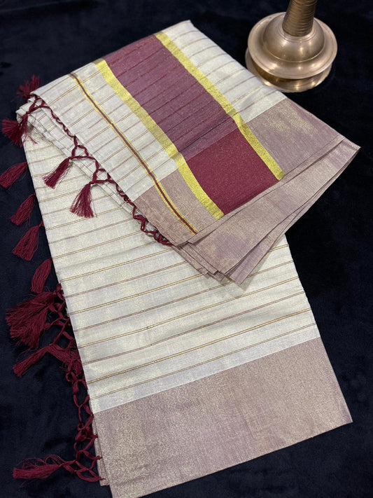 Regular price $60.00 AUDRegular priceUnit price perSale price $60.00 AUDSaree - Silver Kasavu with Polka Dots