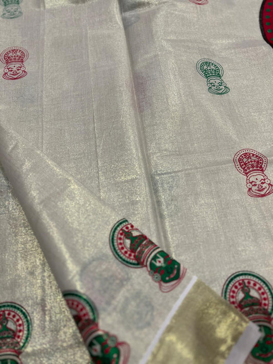 Saree - Gold Kasavu with Theyyam & Dancer on Pallu