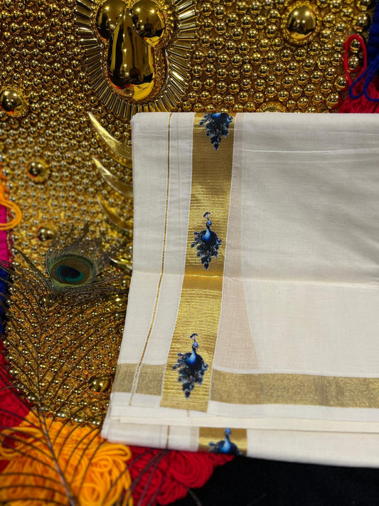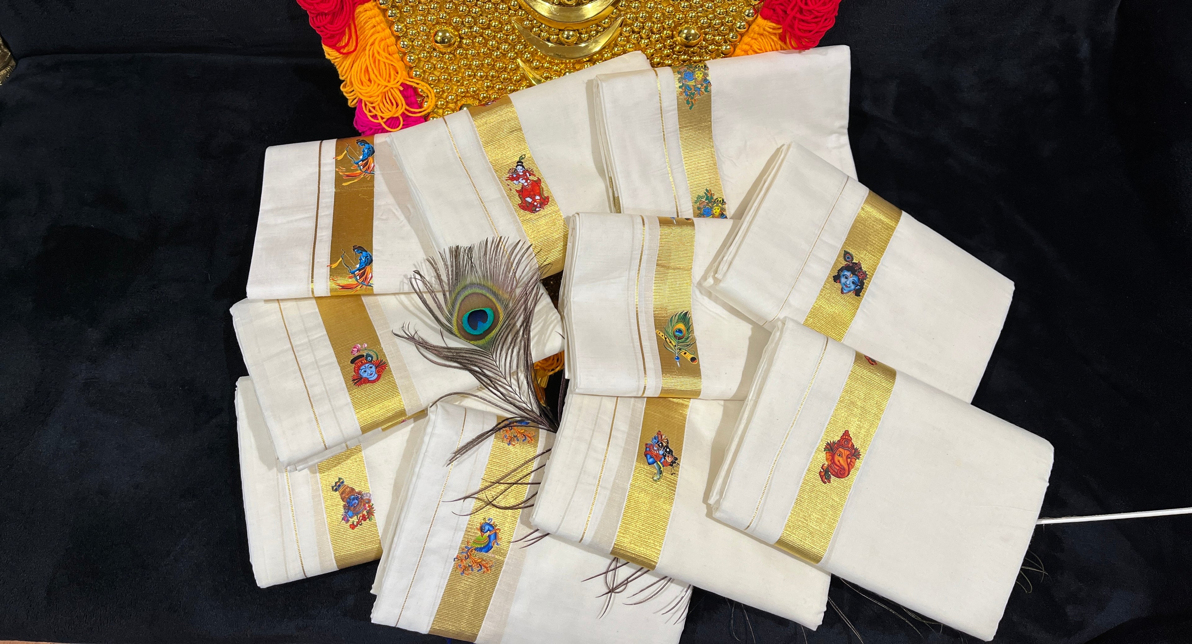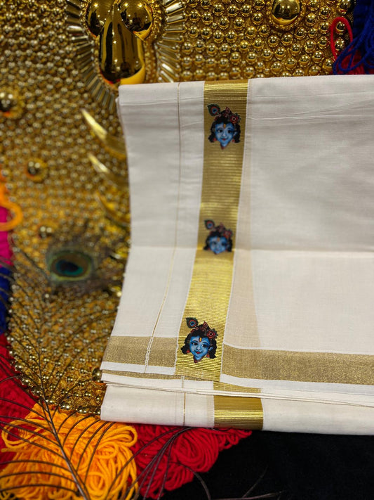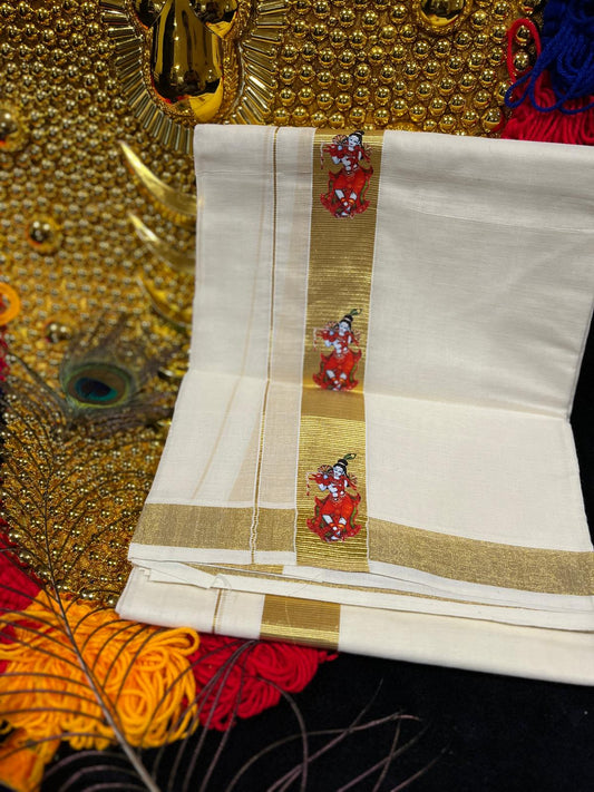 Kasavu Mundu - Gold Border with RadhaKrishna Print