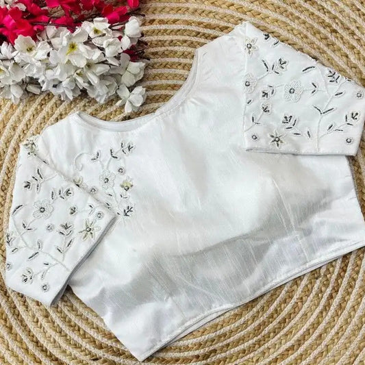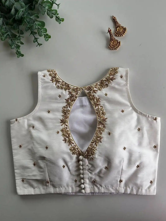 Sold outWhite Silk blouse with Handwork