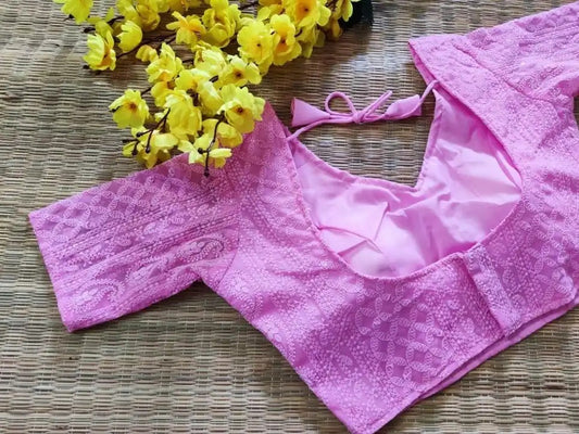 Georgette Chiffon Blouse with Chikankari work - Pastel shades