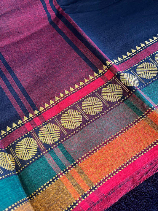 • Dance Practice Saree - Navy blue & Beige Double Shade
