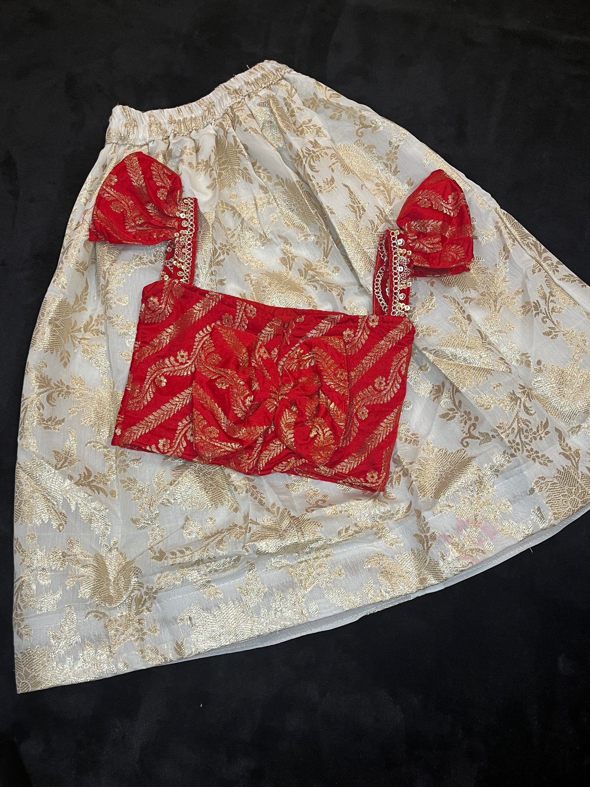 Banarasi Skirt & Blouse for 3 Year Old - Red & Gold