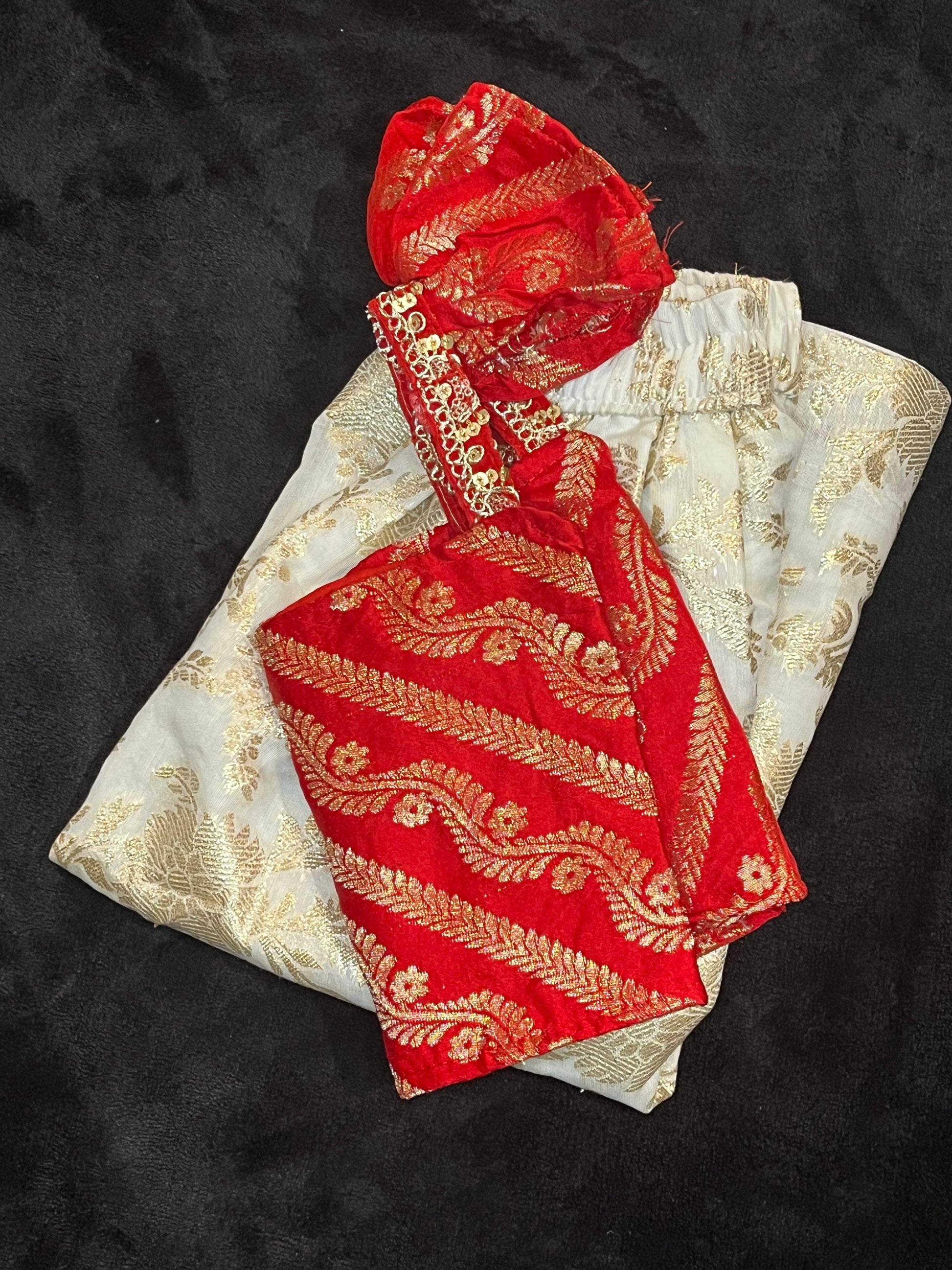 Red top with banarasi fabric with pretty little sleeves