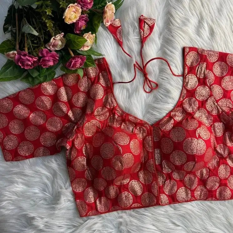 Readymade dola silk blouse with light gold brocade pattern