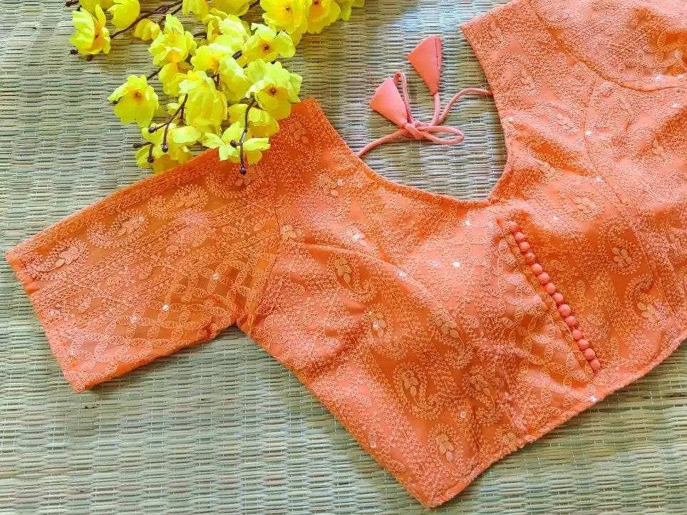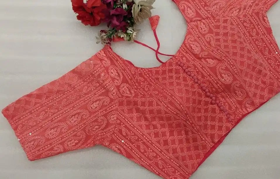 Georgette Chiffon Blouse with Chikankari work - Pastel shades