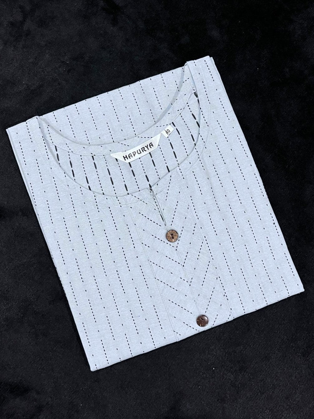 Pastel blue slubcotton kurta with black thread running throughout fabric