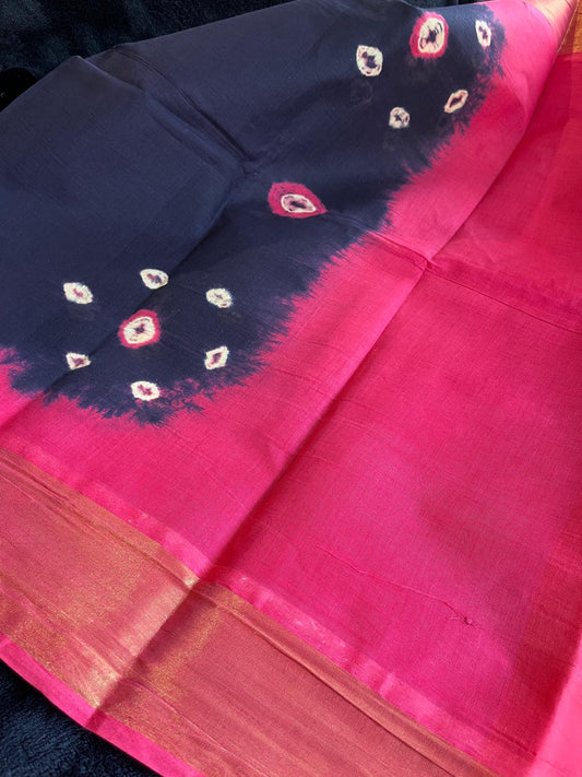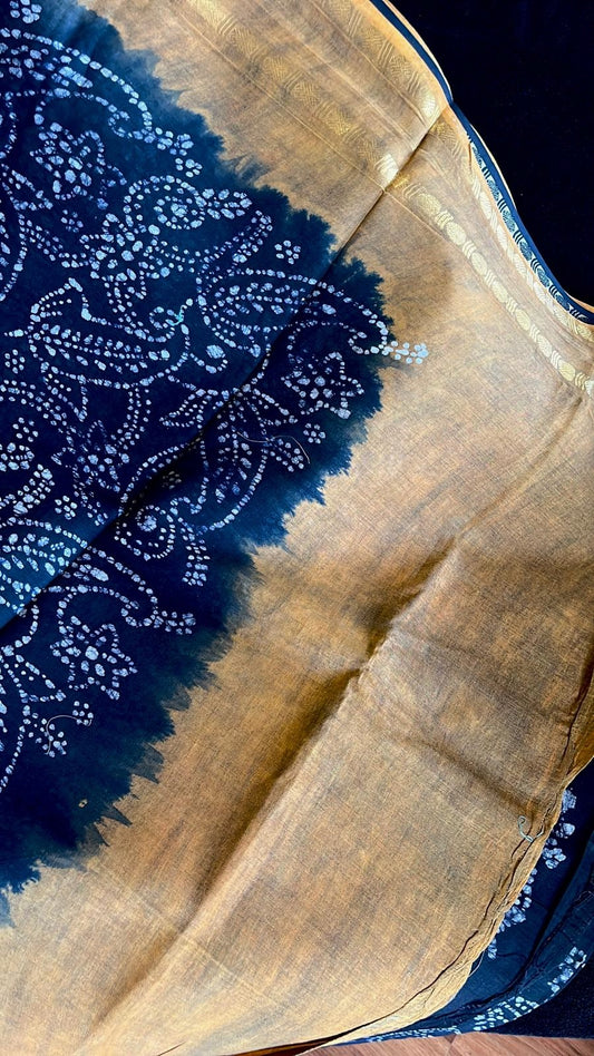 Dance Practice Saree - Navy blue Bandhani (with blouse)